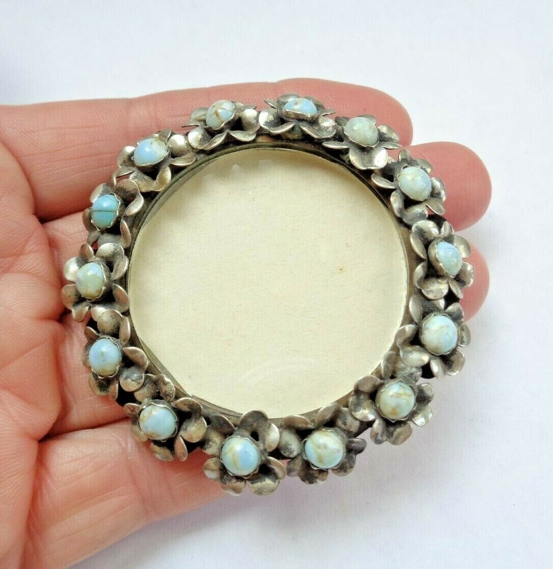 Antique AP MADE IN ITALY Turquoise Art Glass Flower Border Silver Picture Frame