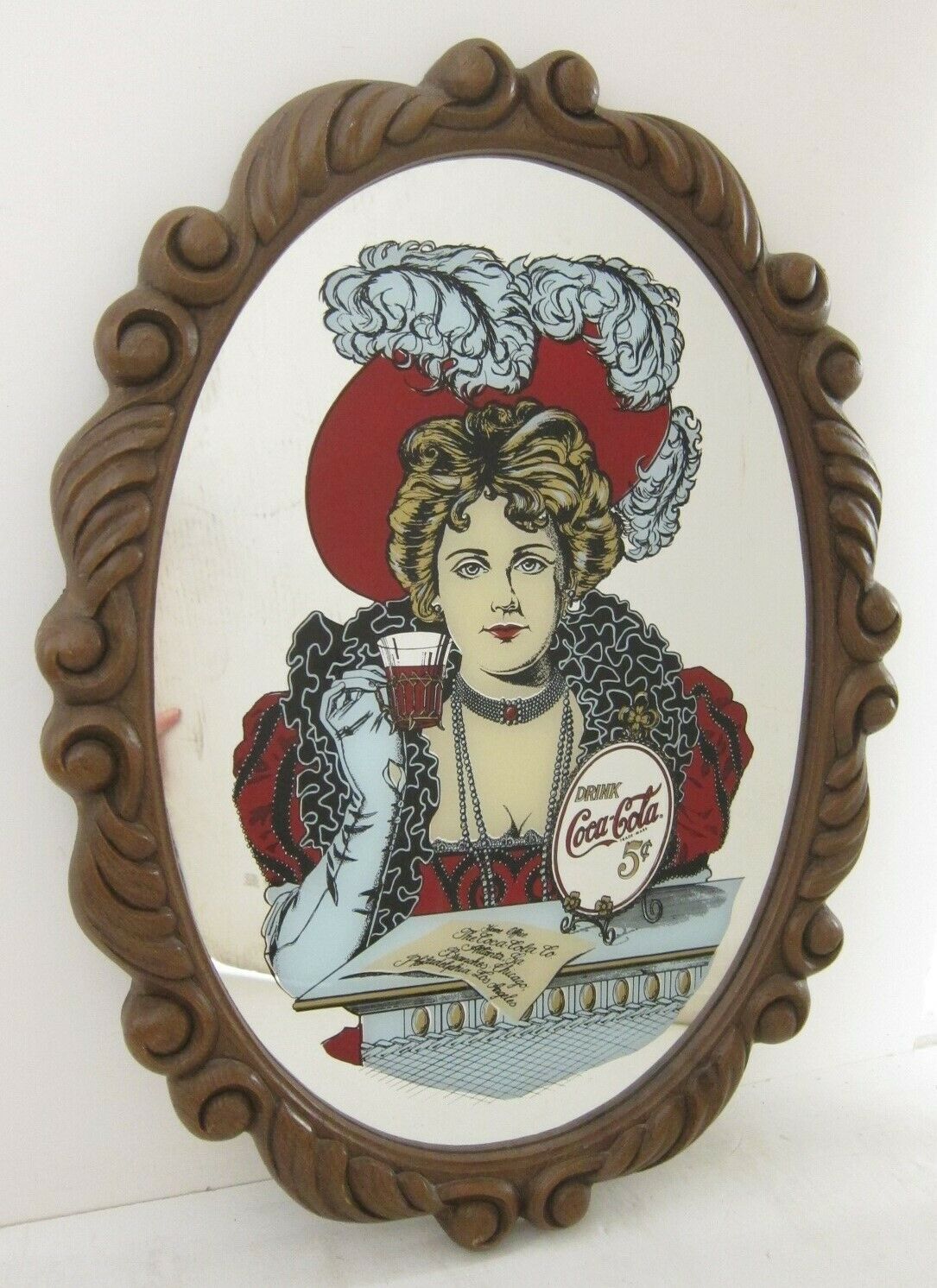 Coca Cola VTG 90s Retro Victorian Oval Reverse Glass Screen Print Mirror 16x22