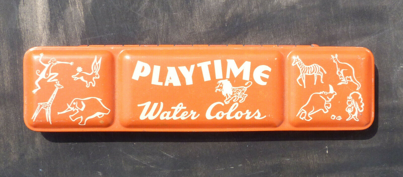Title (ebay affiliate link): Vintage Binney & Smith PLAYTIME Water Colors No.515 Litho Tin Made in USA