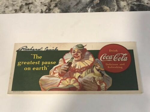 Title (ebay affiliate link): 1940 Coca Cola Ink Blotter Clown and Duck The Greatest Pause on Earth B