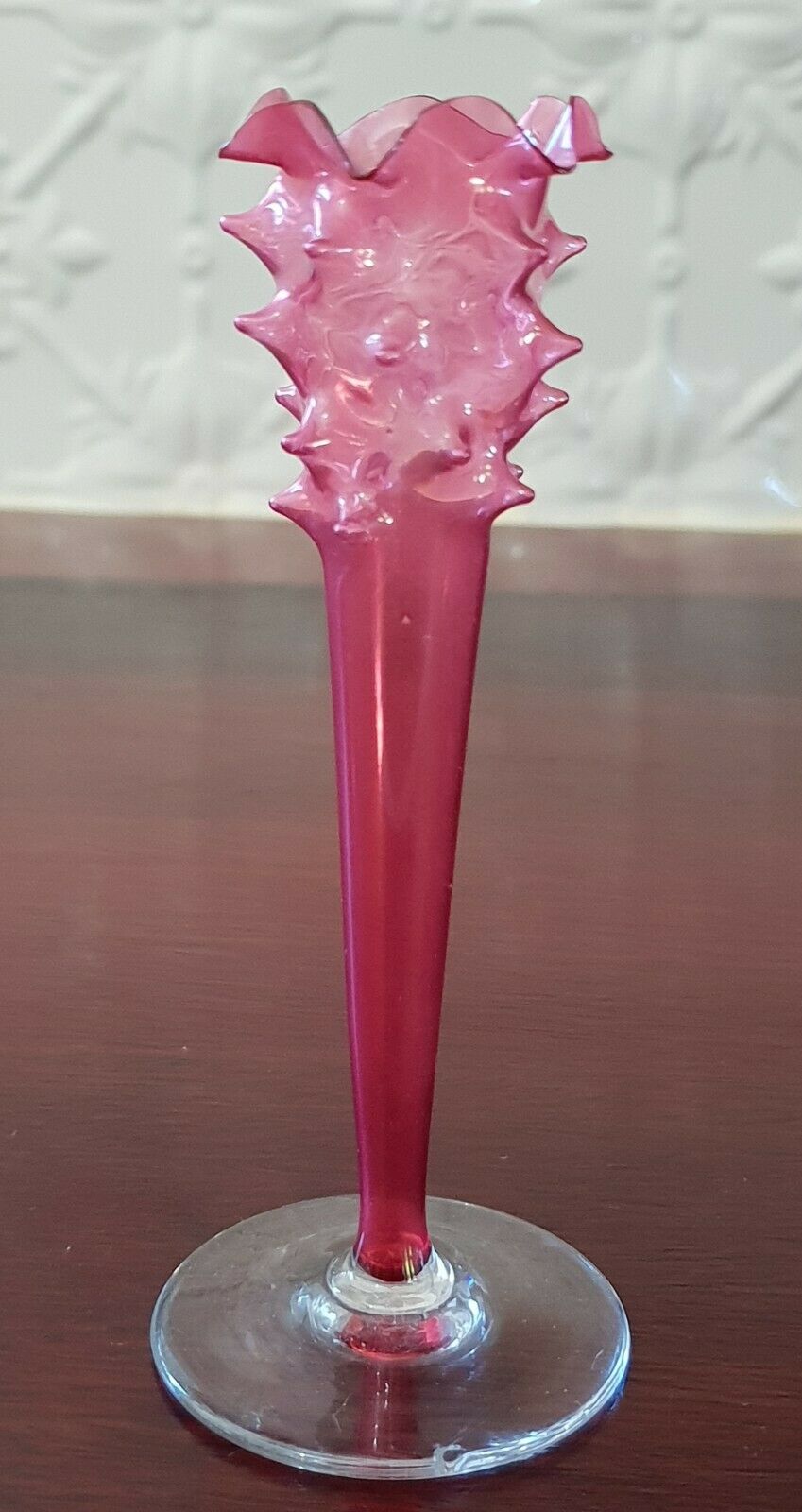 GORGEOUS VINTAGE RUFFLED CRANBERRY RUBY RED DAINTY VASE