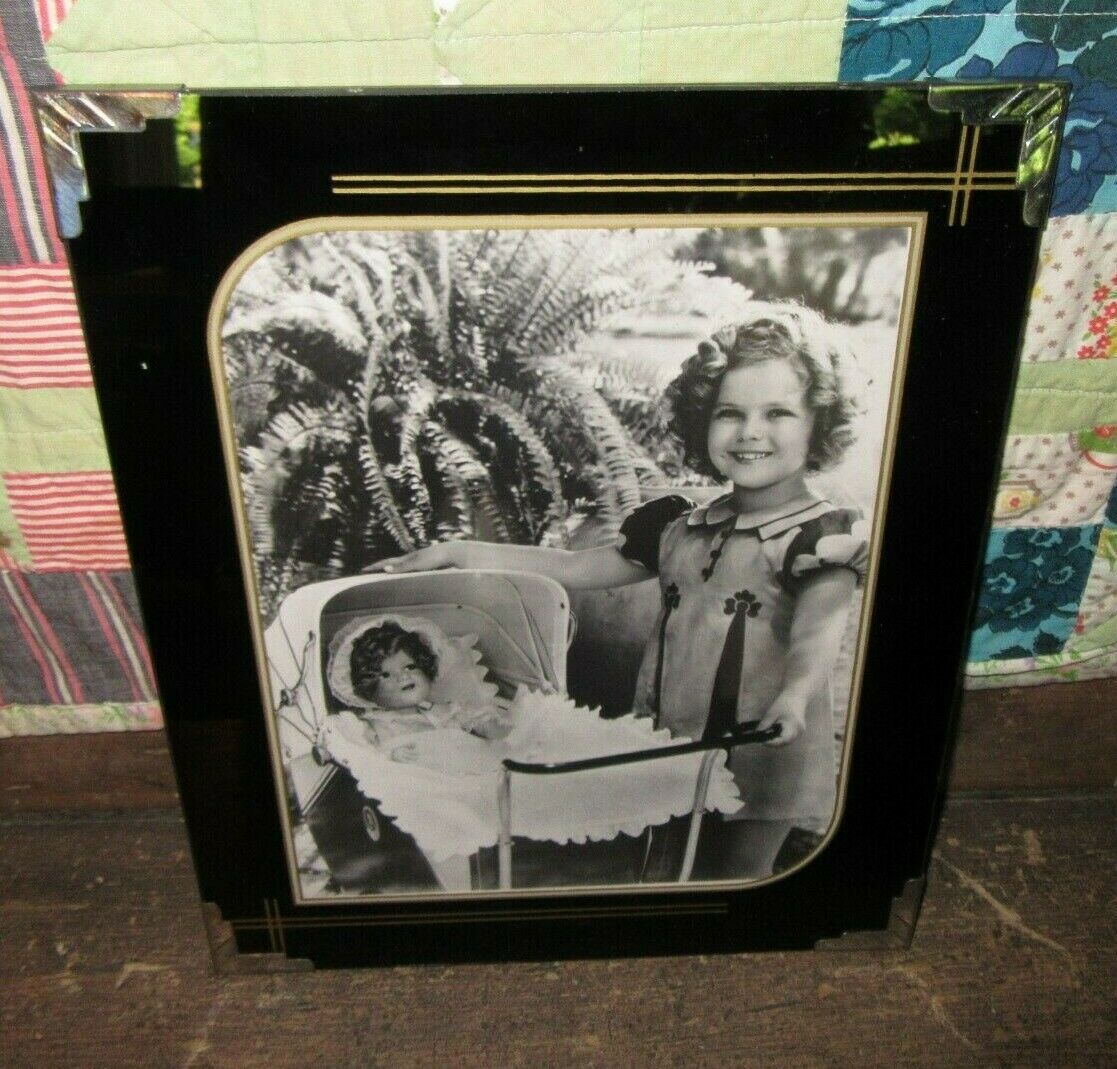 Beautiful Vintage Art Deco Reverse Painted Glass 8 x 10 Frame & Shirley Temple