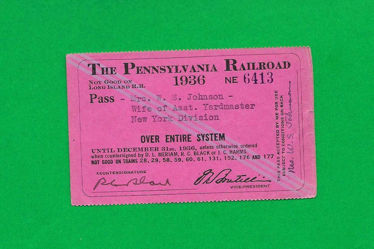 Title (ebay affiliate link): 1936 The Pennsylvania Railroad Co. Pass for Wife Of Employee