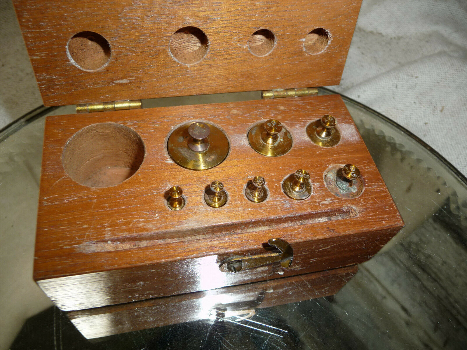 Title (ebay affiliate link): Antique Small Victorian Scale Weights Jewelry Pharmacy Apothecary in Wooden Box