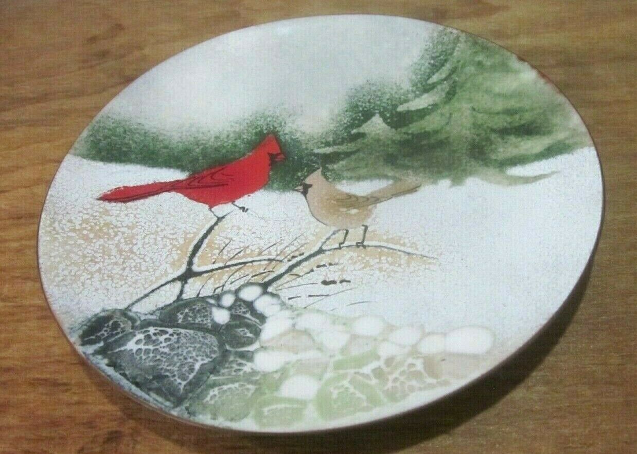 Collectible Hand Painted Bird Plate Enamel Over Copper by Artist Brumm signed