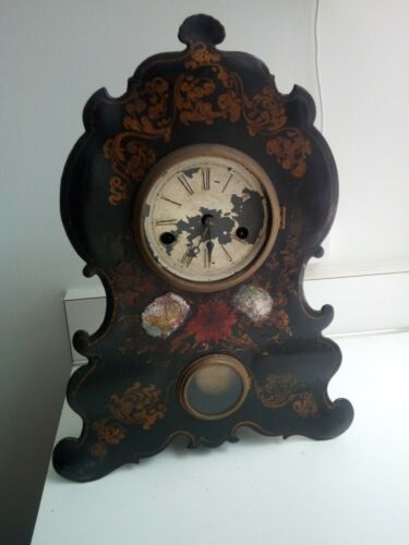 Antique Cast Iron Mother of Pearl Shelf Clock All Original Civil War