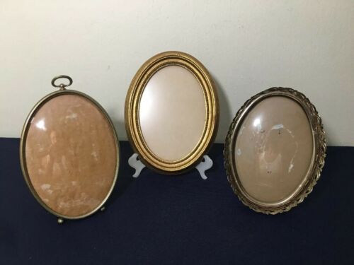 Lot of 3, Vintage Oval Photo Frames 2 with Convex Domed Glass, Gold, 5" x 7"