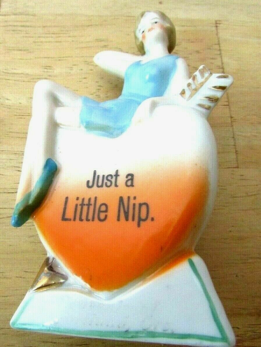 German Porcelain Antique Bathing Beauty "Just A Little Nip "
