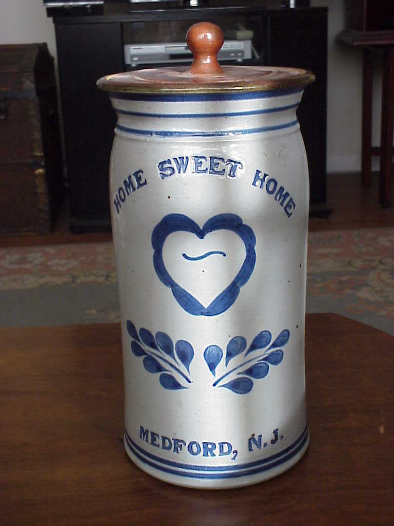 Title (ebay affiliate link): Cobalt Blue Decorated Grey Body Salt Glazed Stoneware Crock or Jar with lid