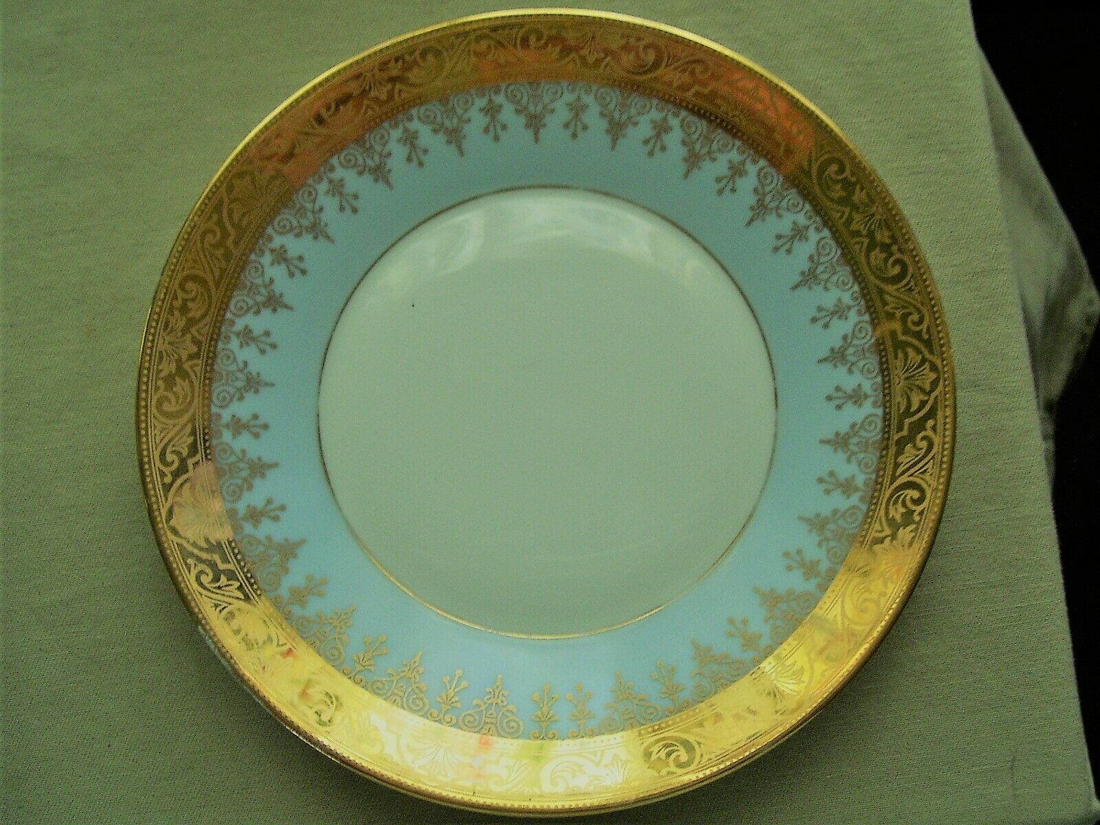 RARE CHF LIMOGES FRANCE ANTIQUE BLUE BAND GOLD ENCRUSTED 10 INCH DINNER PLATE
