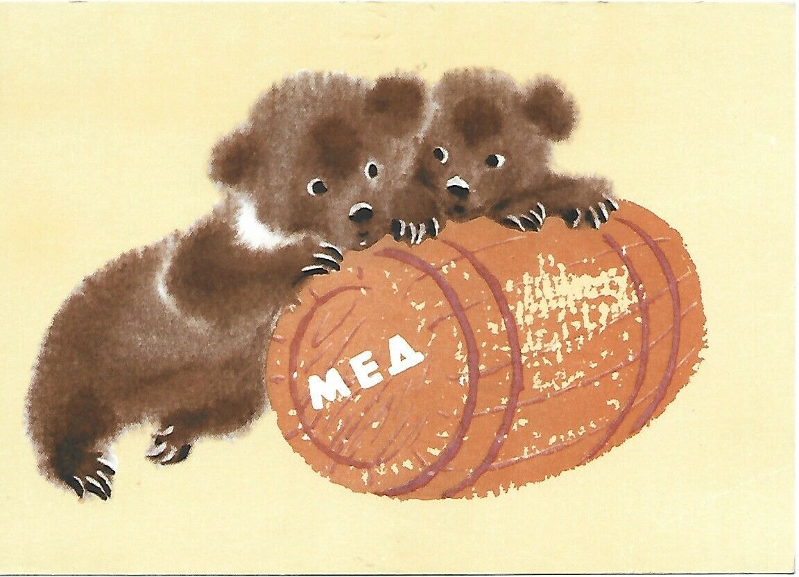Title (ebay affiliate link): Russia Post card two youg bears with a barrel of honey