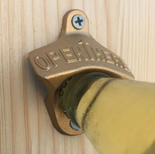 Title (ebay affiliate link): Unqiue Open Here Cast Iron Cool Wall Mount Bottle Opener Western Rustic Gold TF