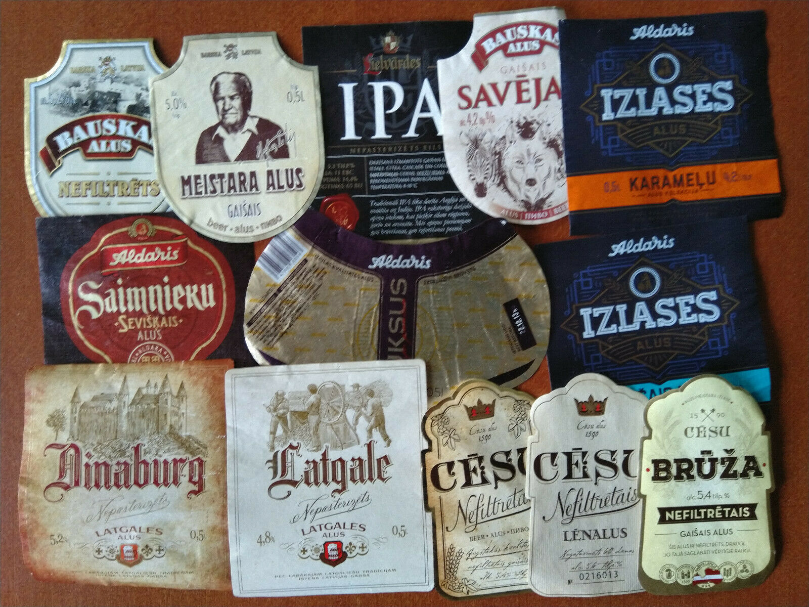 Lot of 10+ used beer labels from LATVIA (all different) #7