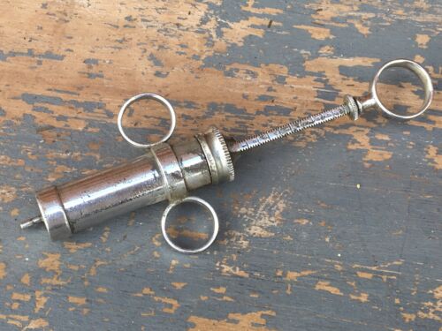 VINTAGE OLD 1960s SURGICAL SYRINGE CHROME