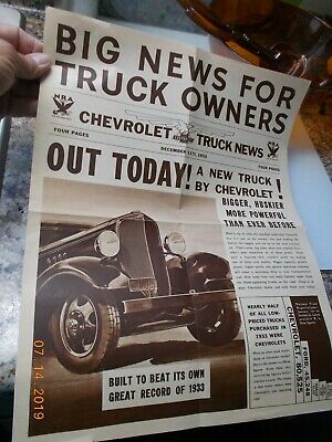 Title (ebay affiliate link): Original Chevrolet Truck News 4 Page ad December 11, 1933