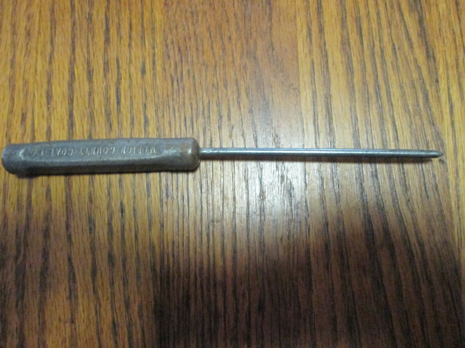 VINTAGE ALL METAL ICE PICK Marion County Coal Co. Embossed lettering