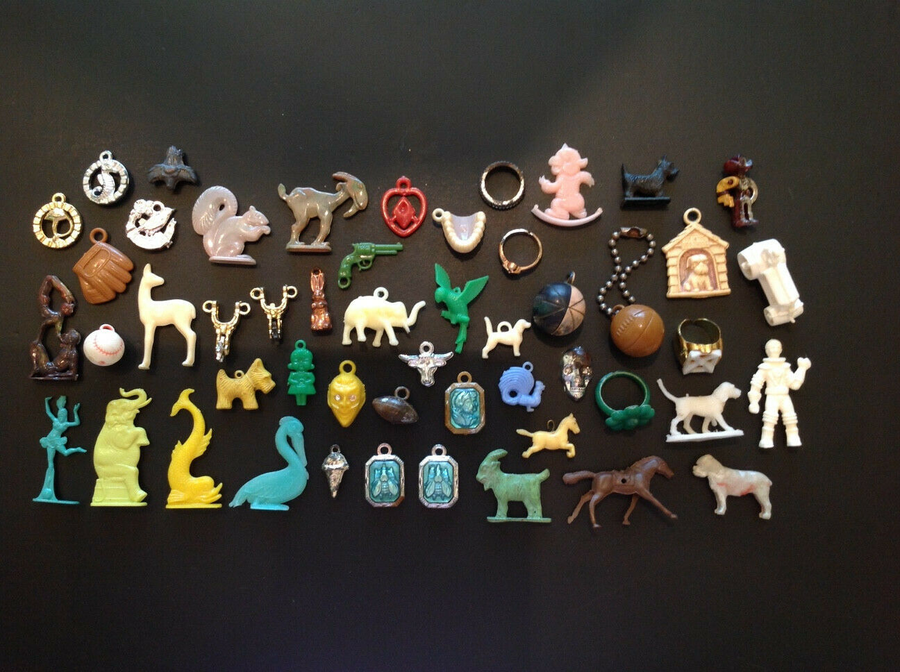 Title (ebay affiliate link): Vintage Plastic Miniature Toys Cracker Jacks, Gumball Charms / Trinkets 51 Pcs.