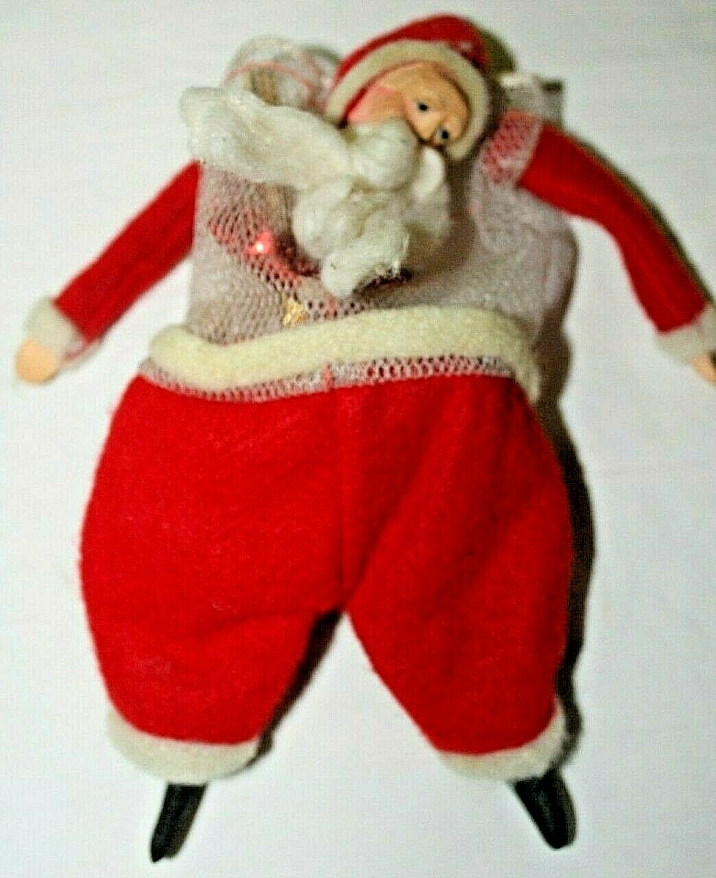 Vtg 8" Old World Santa Mesh Net Bag Candy Container Ornament Clay Face Felt Body
