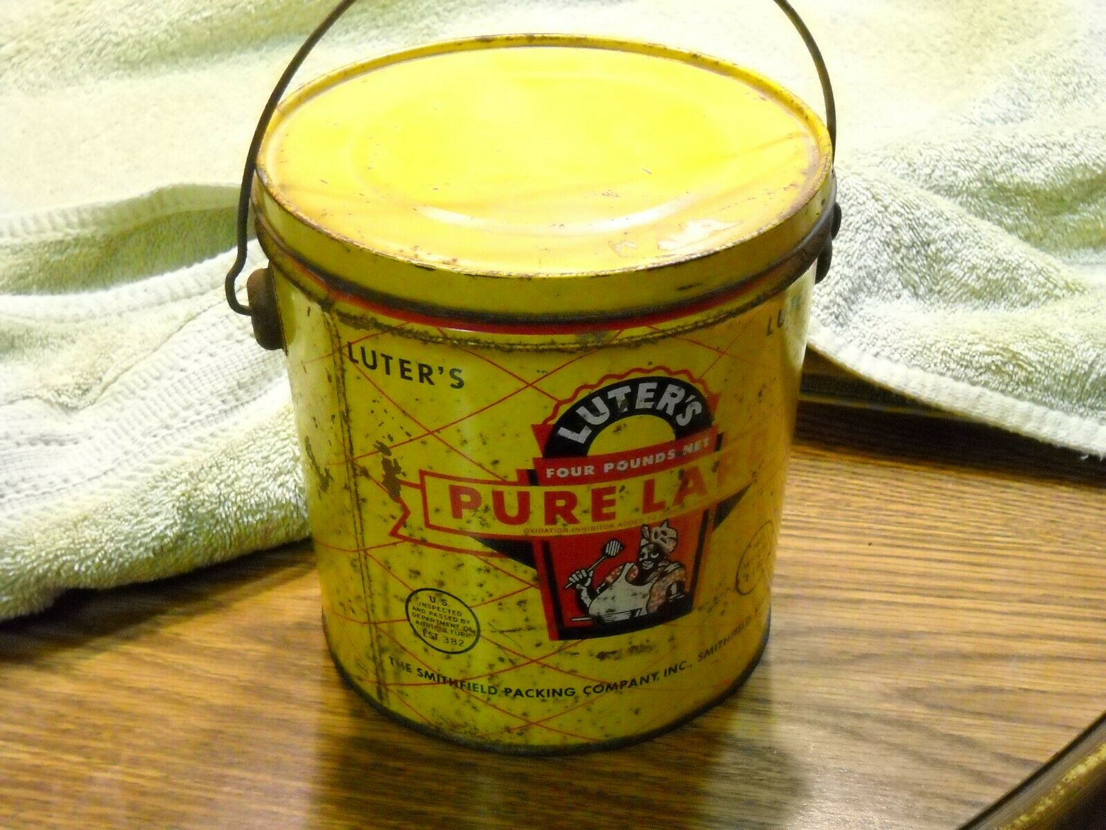 ANTIQUE ORIGINAL LUTER''S PURE LARD TIN 4 POUND SIZE