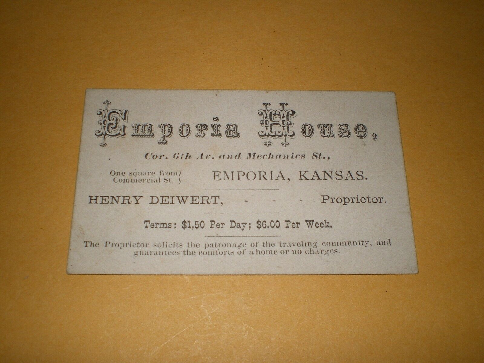 Emporia House Kansas Henry Deiwert Business Trade Card