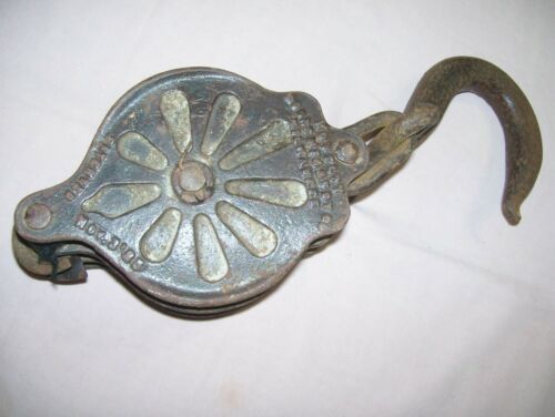 Title (ebay affiliate link): Antique Vintage Triple Cast Iron Farm Pulley Pat.Date Nov.3rd 1885. Milwaukee
