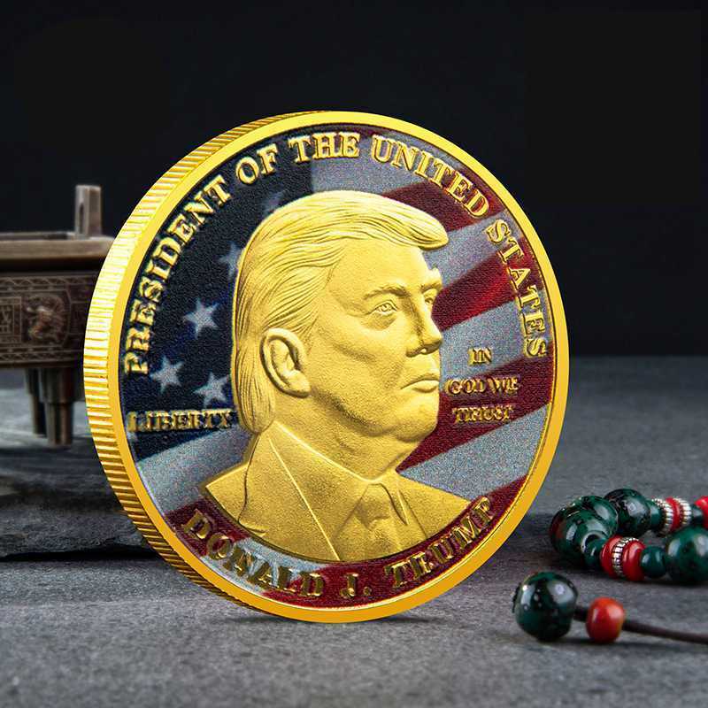 Title (ebay affiliate link): 45Th President Donald Trump Gold Plated EAGLE USA Flag Commemorative Coin RF