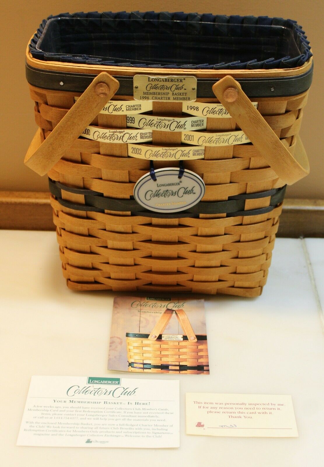 1996 Longaberger Collectors Club Tall Key Basket w/Liner, Protector and Tags