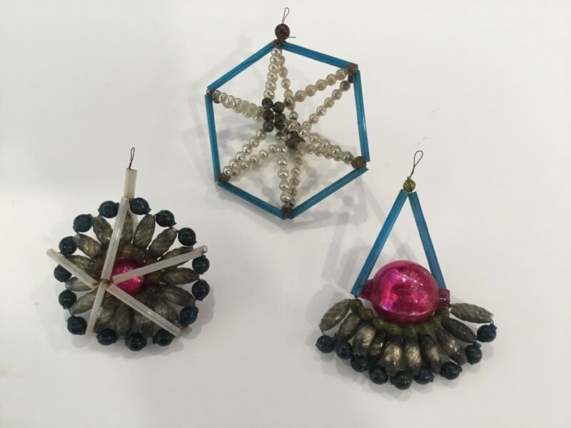 3 Antique/Vintage Mercury Glass Bead Wire Christmas Tree Ornaments