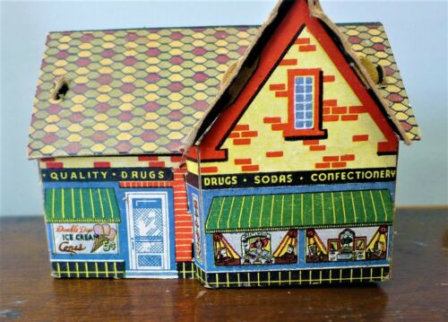 Title (ebay affiliate link): DRUG STORE 1940''s VINTAGE BUILT-RITE CARDBOARD BUILDING #56-4