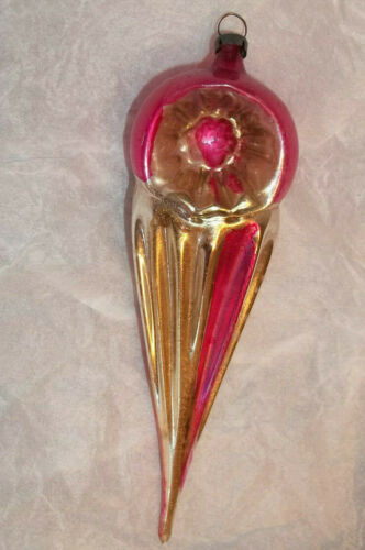 Title (ebay affiliate link): Vintage German Glass Pink Gold Silver Ice Cream Cone Icicle Indent Ornament