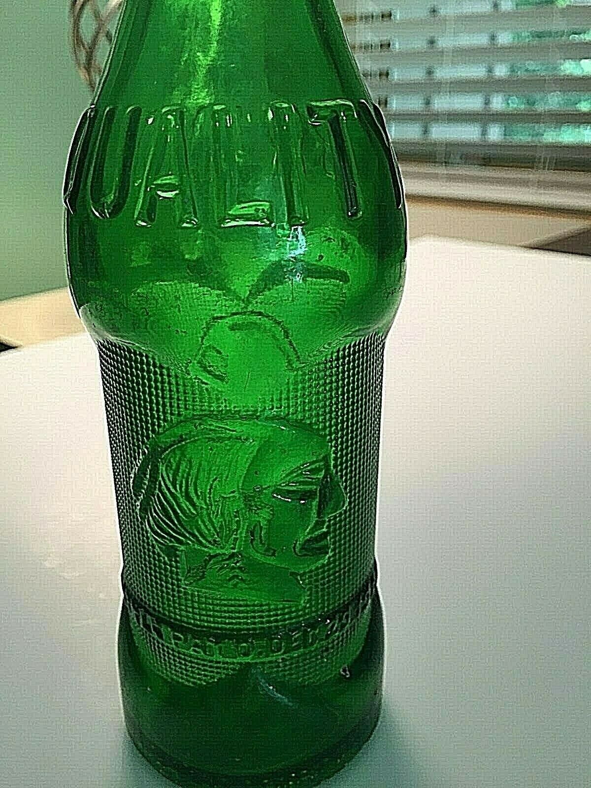 Title (ebay affiliate link): QUALITY BRAND deco soda bottle with embossed Indian, Coca Cola bottling, Kansas