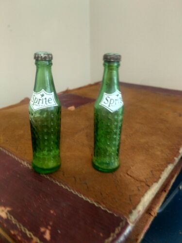 Title (ebay affiliate link): Vintage Miniature SPRITE Glass Soda Bottles Two 3" Triangle Mark Coca Cola