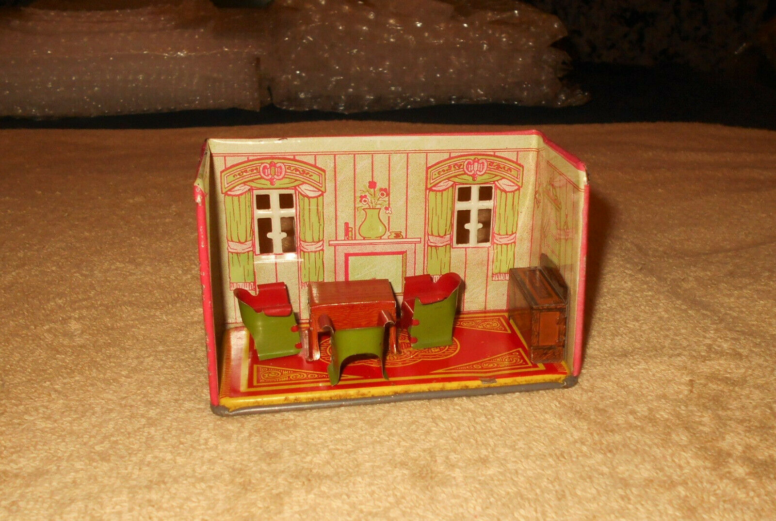 Vintage 1920''s Marx Newlyweds Miniature Tin Playset w/ Tin Furniture OLD