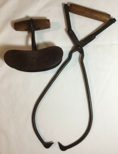 Title (ebay affiliate link): Antique Ice Block Tongs, Food Chopper, Metal & Wood, Rustic Farmhouse Decor