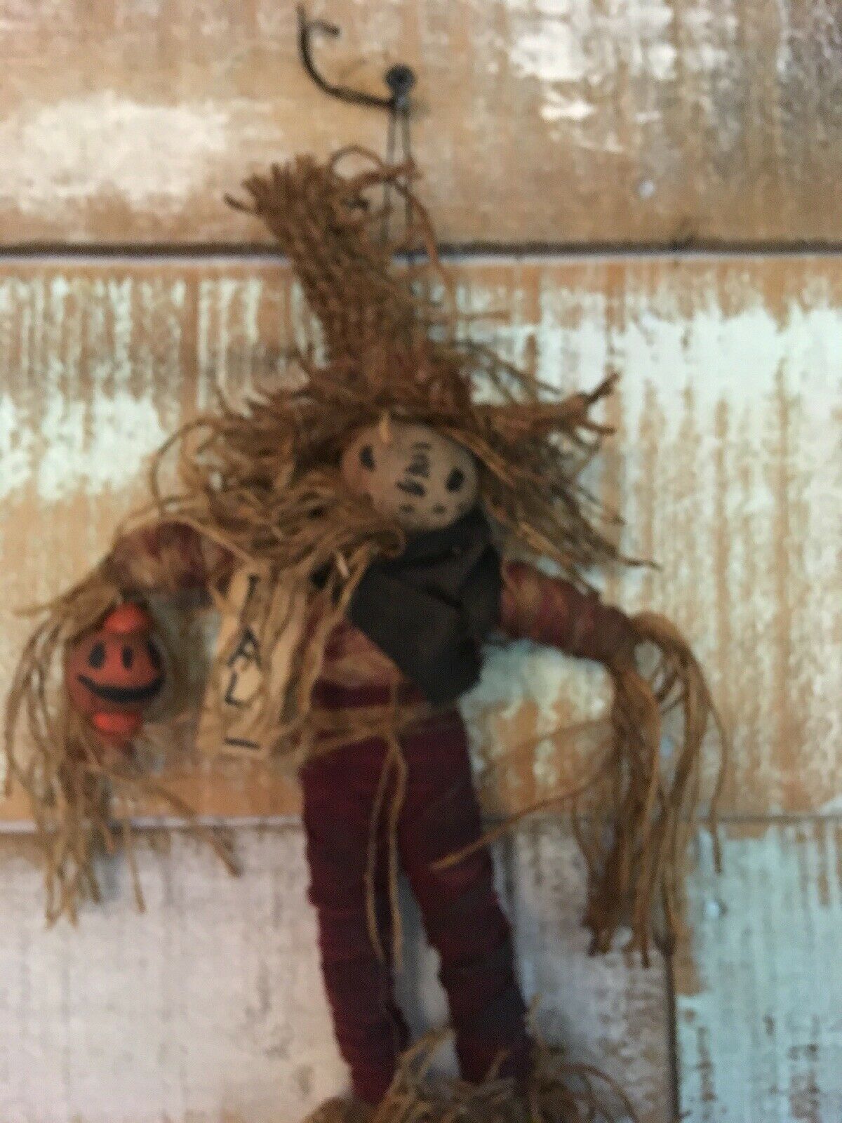Title (ebay affiliate link): Primitive folk Art ARtist made Small Scarecrow doll ornament charmer hanger
