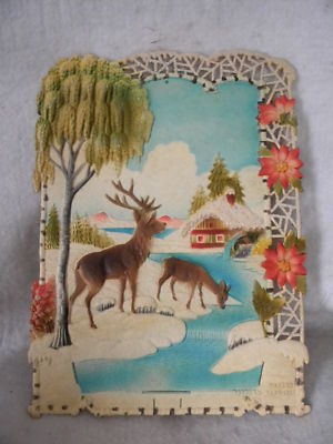 Title (ebay affiliate link): VINTAGE GERMAN CARDBOARD DIE CUT CALENDAR TOP-DEER