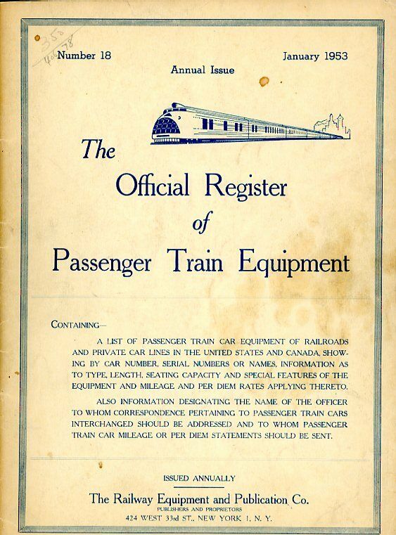Title (ebay affiliate link): Official Register of Passenger Train Equipment - January 1953