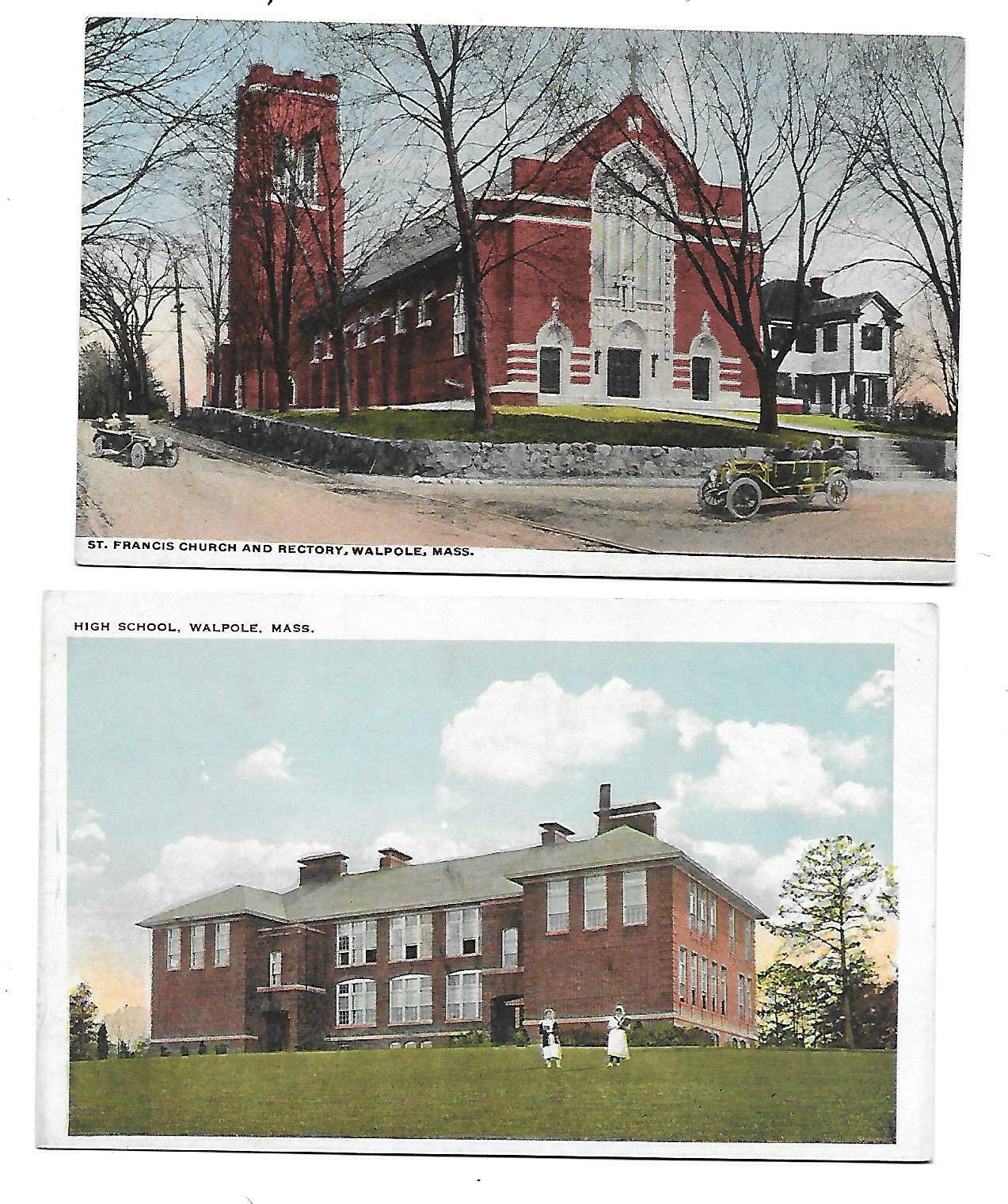 Walpole, MA - 2 Cards - Church - School