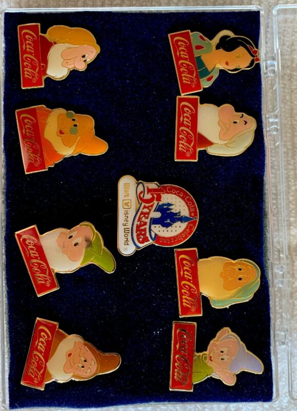 Title (ebay affiliate link): Coca-Cola Walt Disney Celebrating 15 Years Snow White and Seven Dwarfs Pin Set