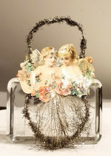 Title (ebay affiliate link): Two young Cherubs in Midst of Pink Poppies. Paper & Tinsel German Ornament