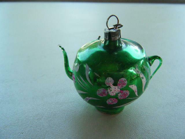Title (ebay affiliate link): Antique GREEN Glass TEAPOT KETTLE Christmas Ornament Spout Handle Vintage