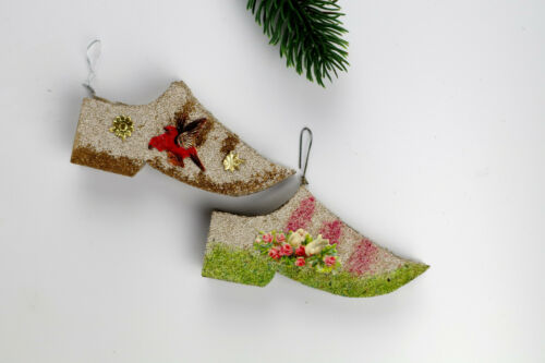Title (ebay affiliate link): 2 x Vintage Venetian Dew Christmas Ornaments - cardboard,shoe