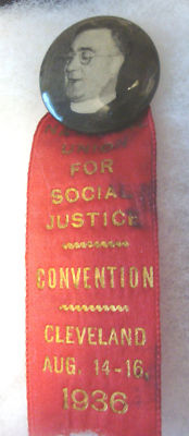 Father Coughlin NUSJ Cleveland Political Pinback Ribbon