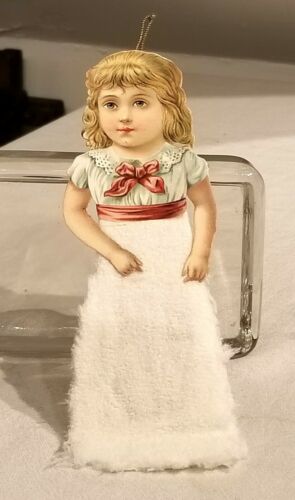 Title (ebay affiliate link): Blond-haired Girl, with Cotton Skirt. Cotton, Paper & Tinsel Ornament.