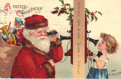 VINTAGE CHRISTMAS CARD ELLEN CLAPSADDLE SANTA&TELEPHONE