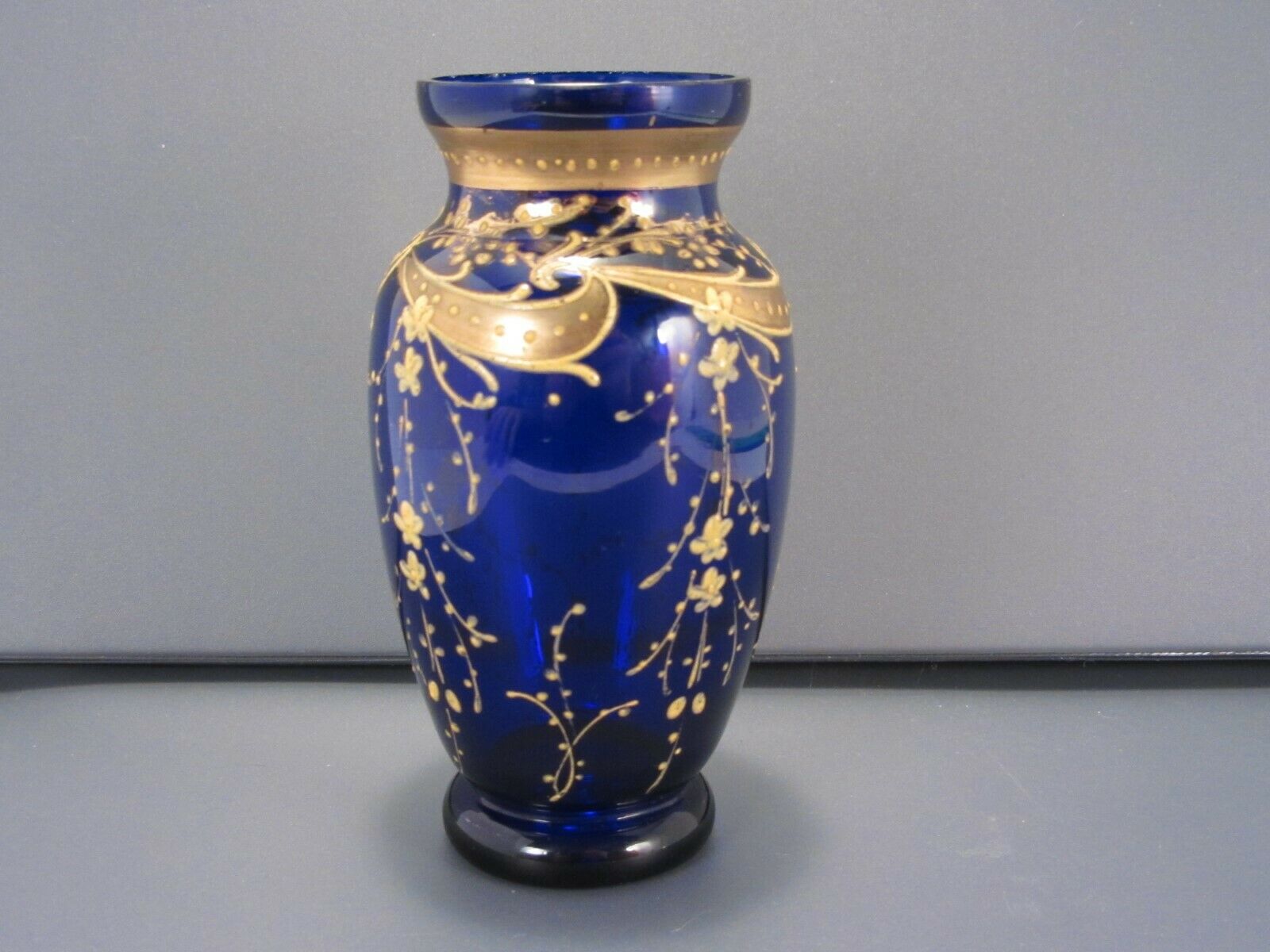 Antique Vintage Hand Blown Enamel Cobalt Blue Glass Vase, Small