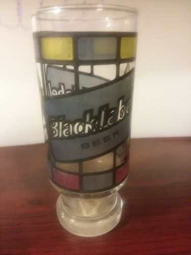 Title (ebay affiliate link): Vintage BLACK LABEL BEER Stained Glass Style Beer Glass 6.5" 14 Ounces PBR