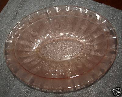 Title (ebay affiliate link): Pink FLORAL POINSETTIA Depression Glass Oval Veg Bowl