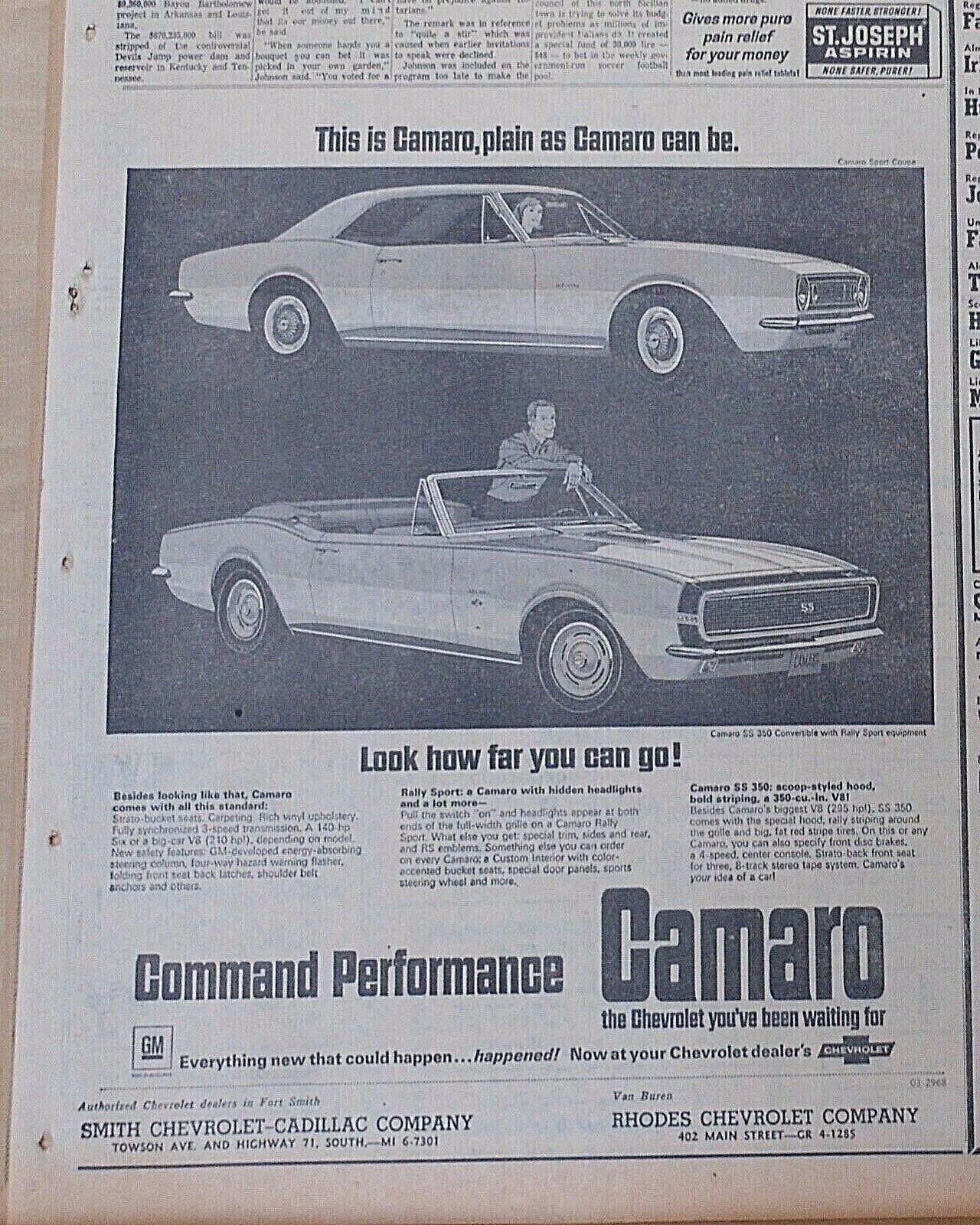 Title (ebay affiliate link): 1966 newspaper ad for Chevrolet - ''67 Camaro SS 350 Convertible with Rally Sport