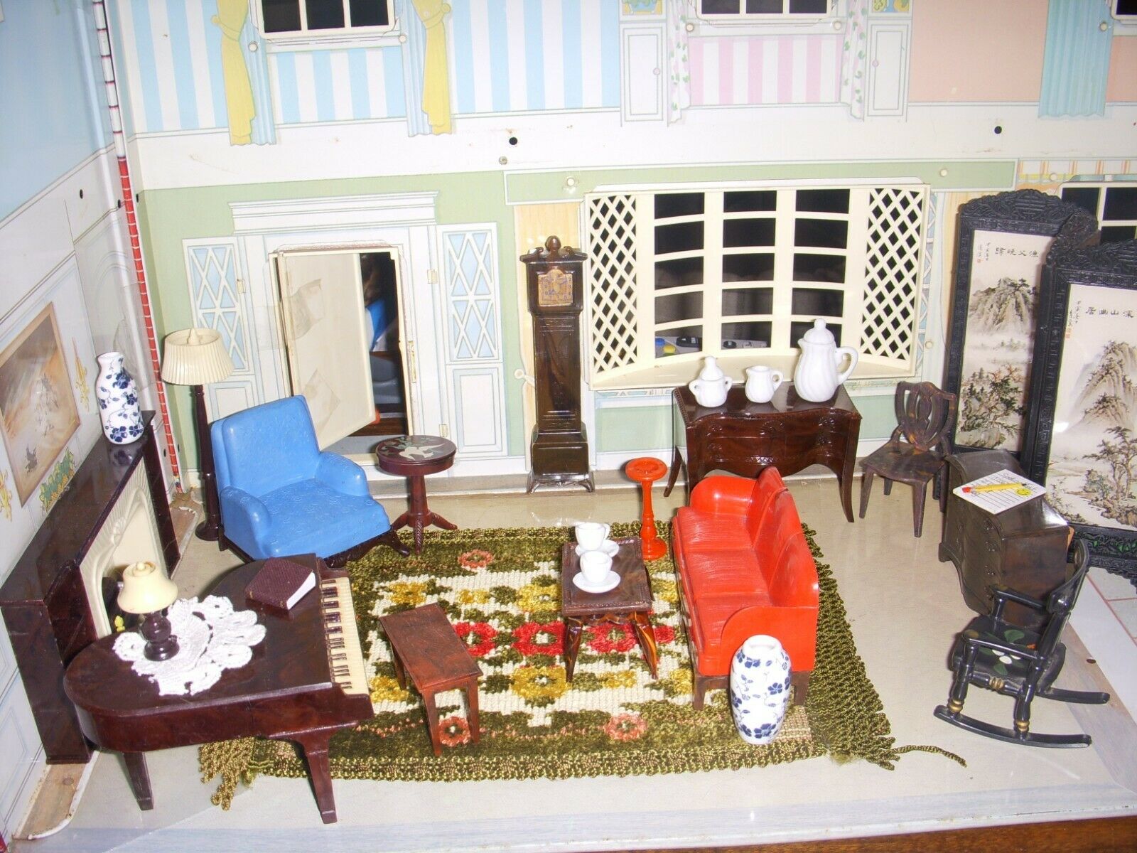 Title (ebay affiliate link): RENWAL LARGE LIVING ROOM SET PLASTIC DOLLHOUSE FURNITURE MARX IDEAL P[LASCO